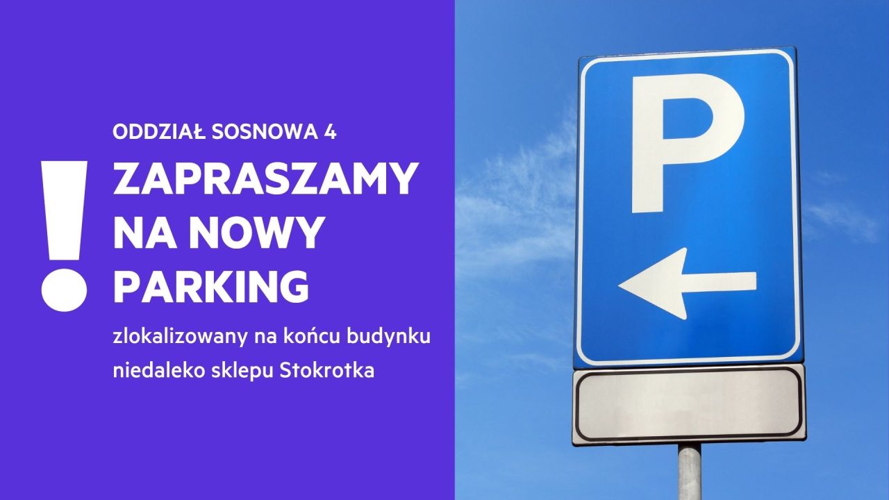 z przyjemnością informujemy, że dla Państwa wygody uruchomiliśmy nowy parking przy ulicy Sosnowej 4. Parking znajduje się na końcu budynku, w sąsiedztwie sklepu Stokrotka, od strony ulicy Milionowej (na szczycie budynku).